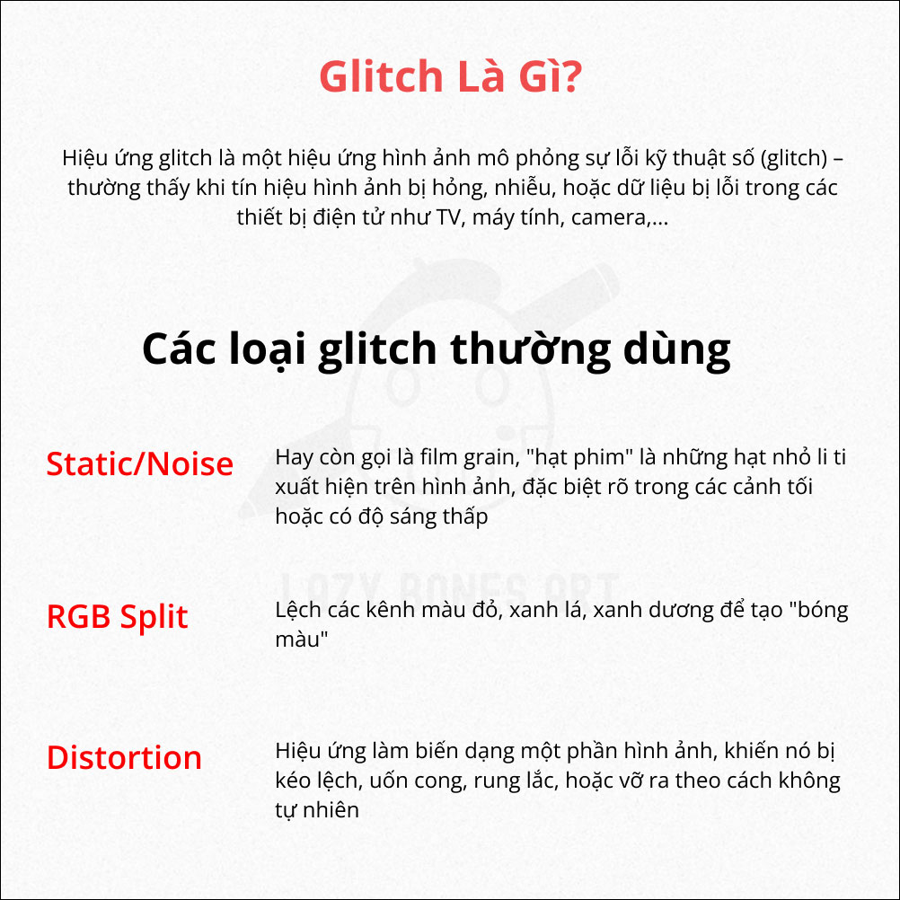Glitch là hiệu ứng mô phỏng hình ảnh bị nhiễu, vỡ hoặc méo mó như thể có lỗi hệ thống.